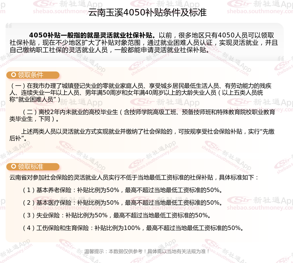 一、2025年云南玉溪4050社保补贴标准是怎么样的?云南玉溪4050一年可拿多少钱?