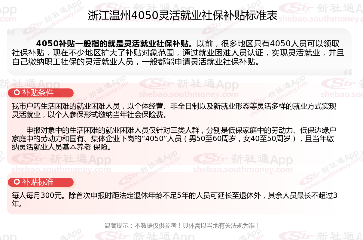 以上就是浙江温州4050灵活就业社保补贴的相关内容,欢迎关注新社通/下载新社通APP了解更多五险一金专业资讯。