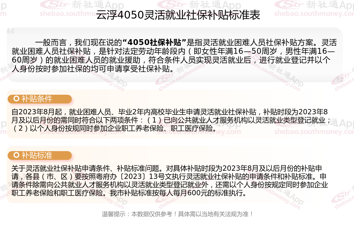 二、2025年云浮4050社保补贴标准是多少?领取条件是什么?