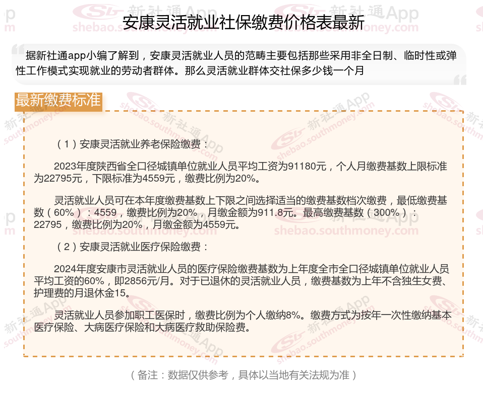 2025安康灵活就业社保缴费价格是多少钱一个月?根据新社通app-社保缴费查询工具提供的最新数据如下: