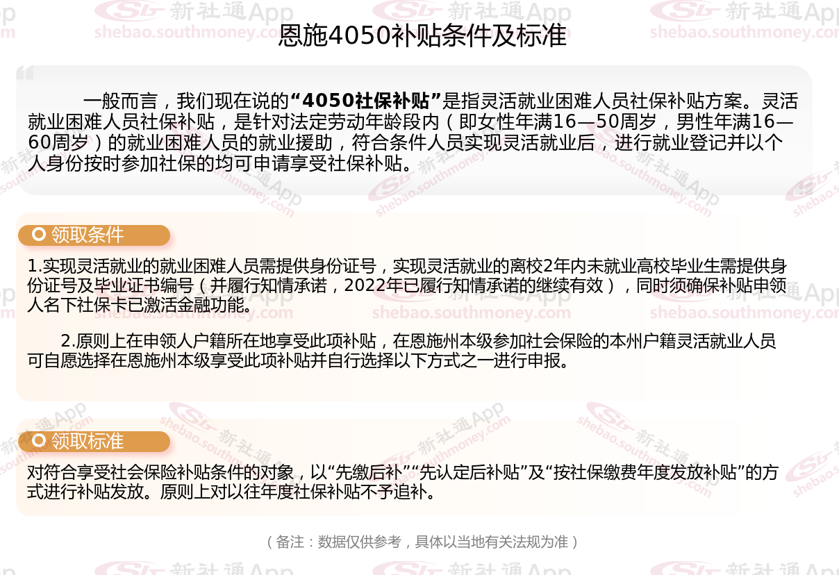 二、恩施4050社保补贴标准及条件2025年最新消息