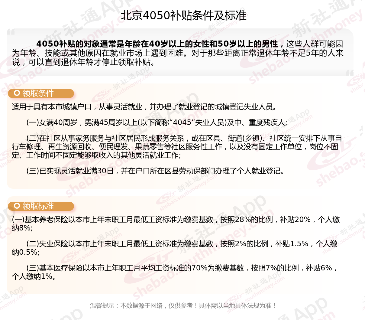 2025北京4050补贴主要针对的是年龄在40岁以上的女性和50岁以上的男性,这些人群通常因为年龄较大而面临就业困难。