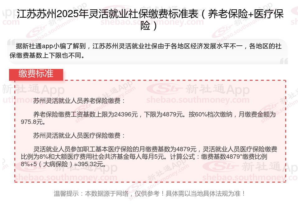 江苏苏州自由职业者社保缴纳金额怎么计算?根据新社通app-社保缴费查询工具提供的最新数据如下: