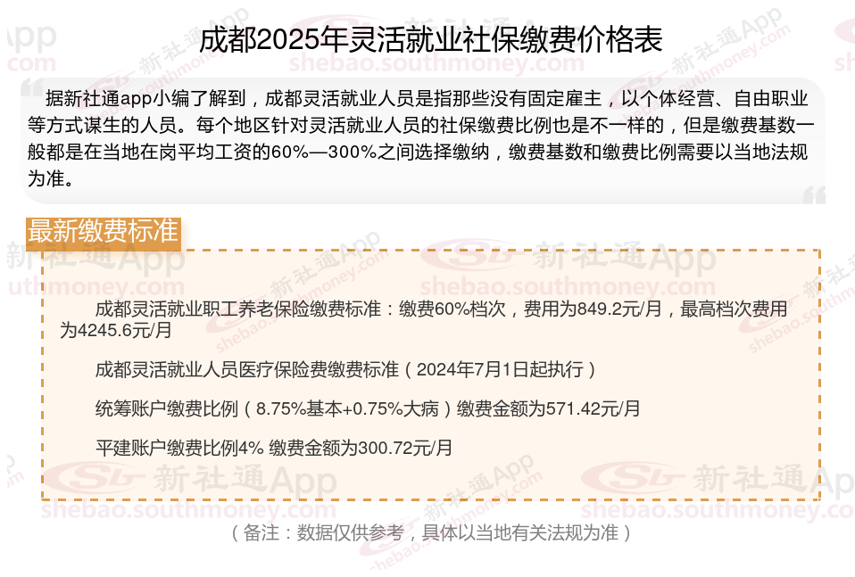 那么,灵活就业者社保是多少钱一个月多少钱?根据新社通app-社保缴费查询工具提供的2025社保缴费标准详情数据: