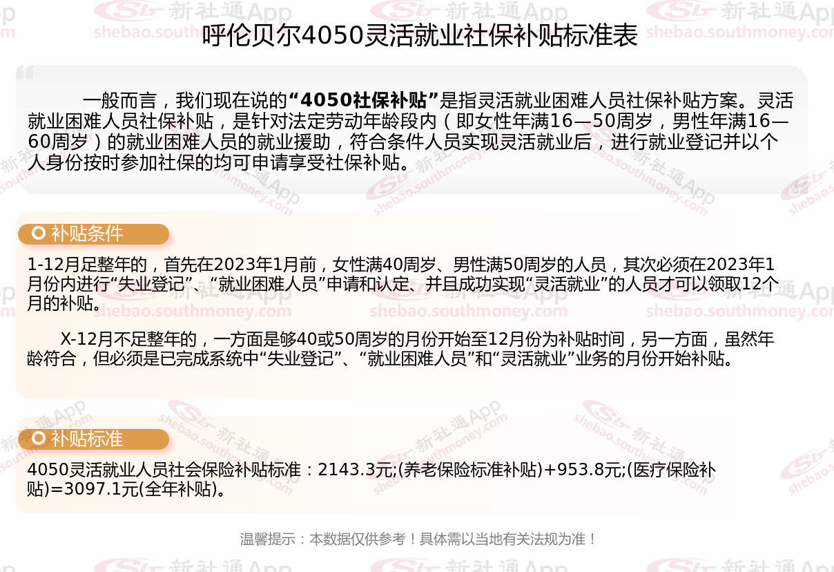 二、2025年呼伦贝尔4050社保补贴标准及条件是什么?