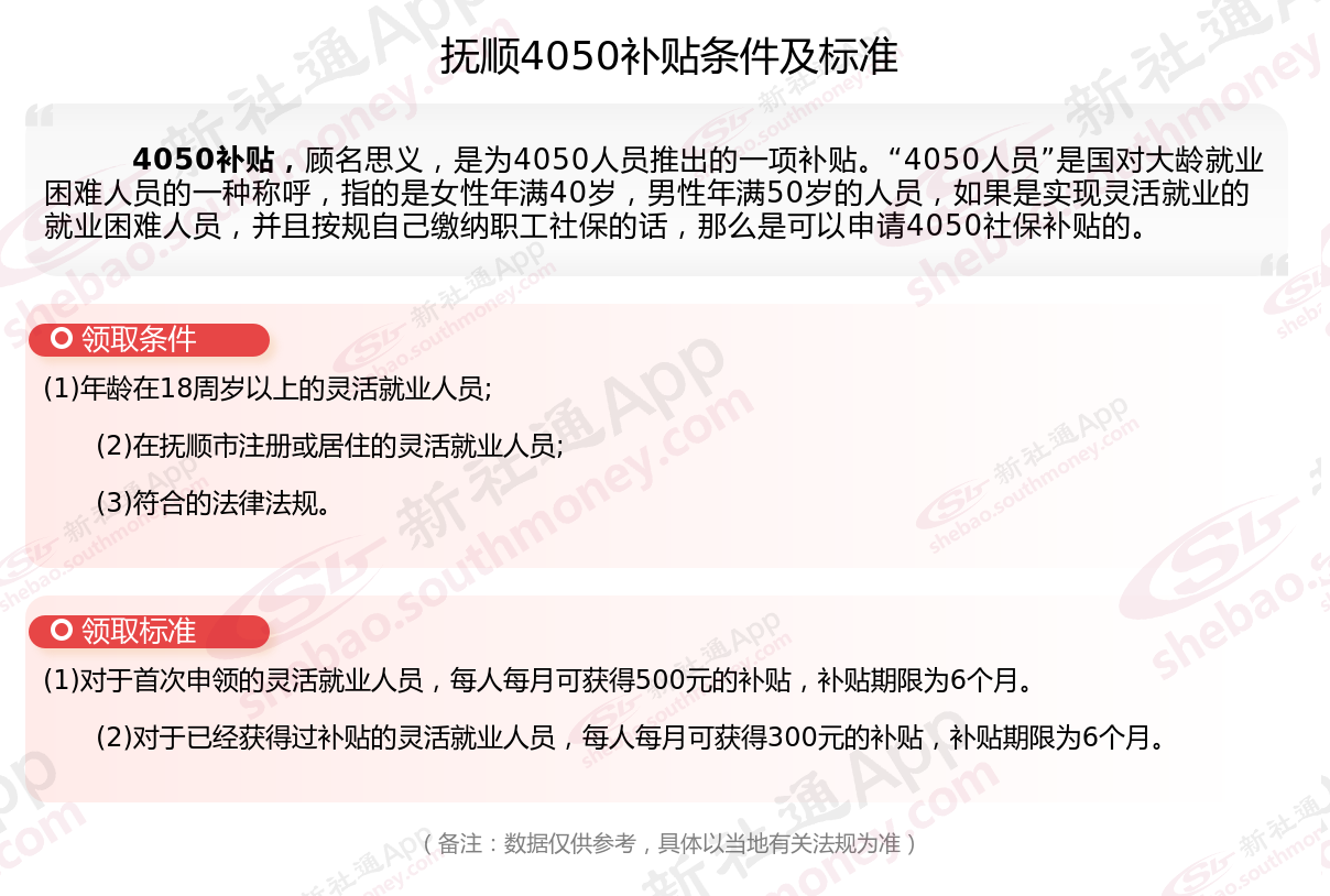 二、抚顺4050社保补贴多少钱一个月?抚顺4050社保补贴2025年最新标准是多少?