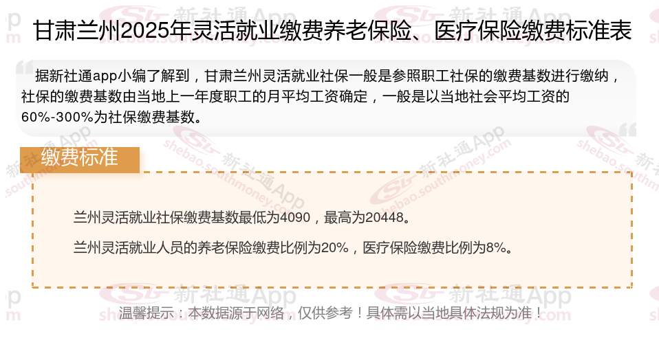 二、甘肃兰州2025年灵活就业社保缴费基数及比例最新消息