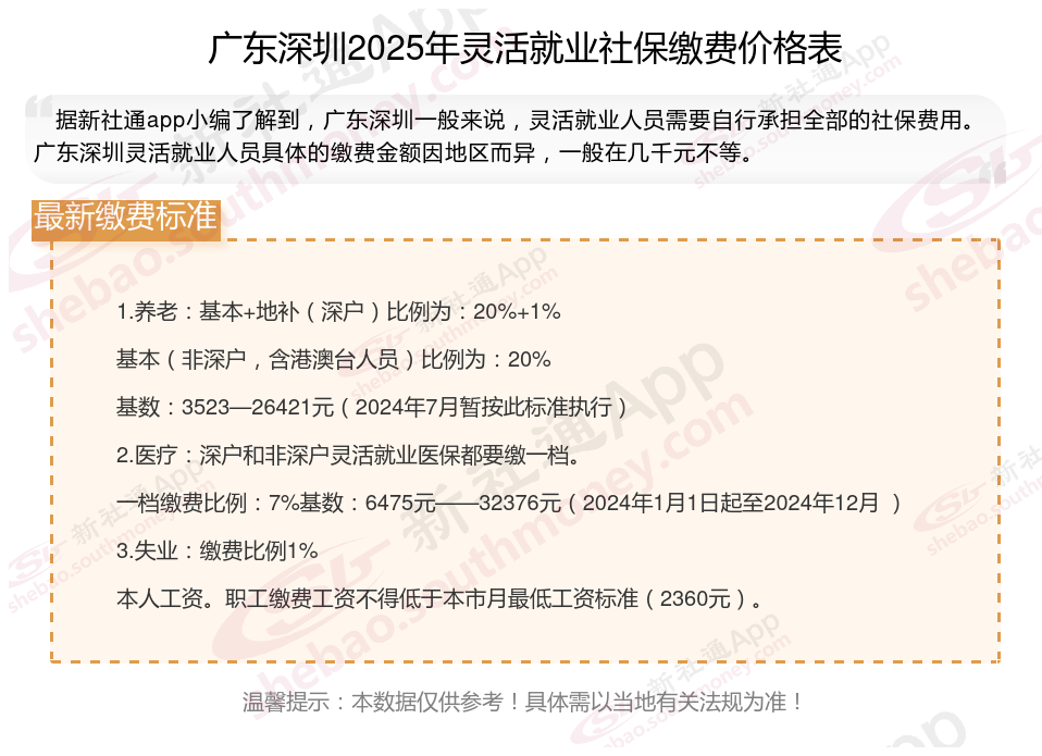 广东深圳灵活就业社保缴费标准,广东深圳社保缴费多少钱?下表是2024-2025年广东深圳社保费用明细参考,根据新社通app-社保缴费查询工具提供的最新数据如下: