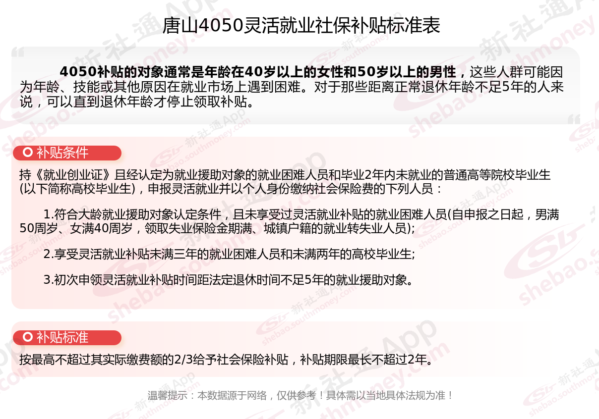 一、2025年唐山灵活就业4050社保补贴标准最新是多少?
