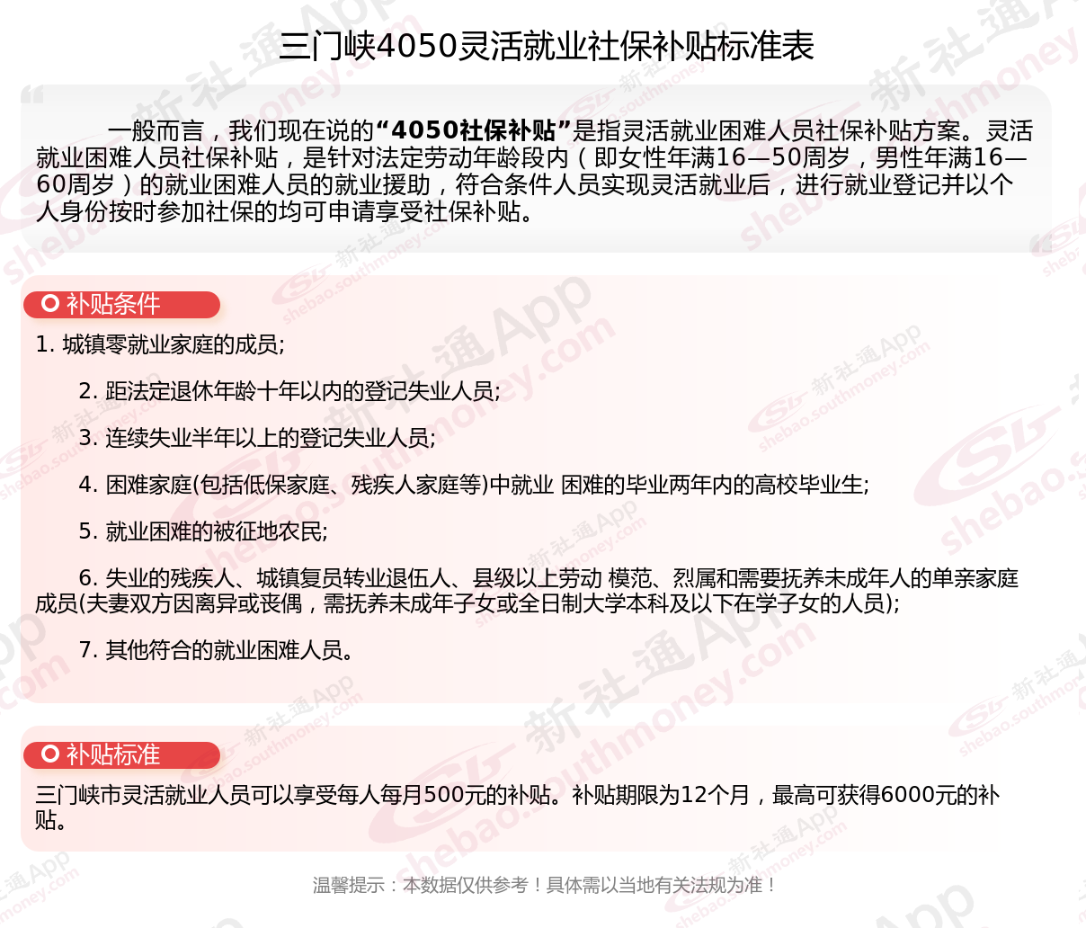 2025三门峡4050补贴标准是多少钱一个月?三门峡4050补贴到账哪里查询到账?2025三门峡4050补贴主要针对的是年龄在40岁以上的女性和50岁以上的男性,这些人群通常因为年龄较大而面临就业困难。