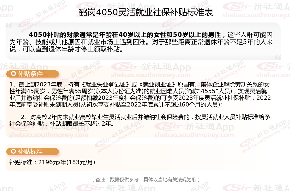 一、2025年鹤岗4050社保补贴标准是怎么样的,附领取条件