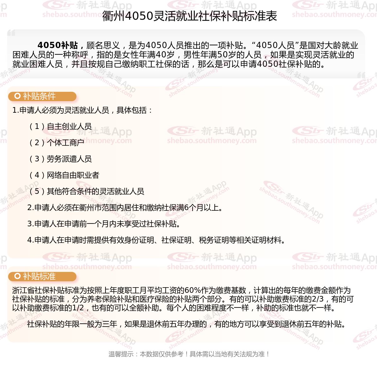 一、衢州4050社保补贴标准及条件2025年最新消息