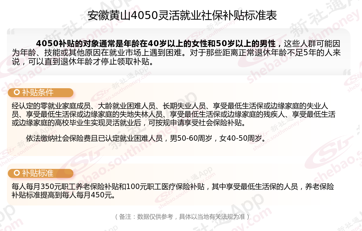 一、2023-2024年安徽黄山灵活就业4050社保补贴标准和条件是什么