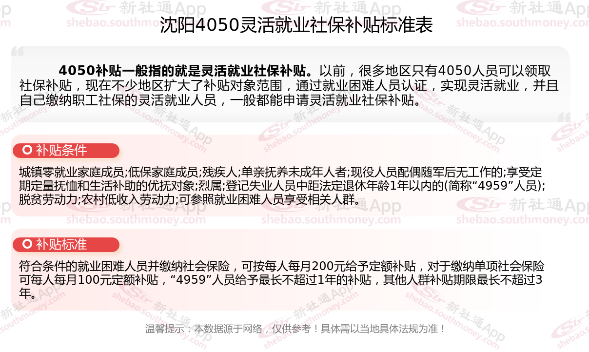 以上就是沈阳4050灵活就业社保补贴的相关内容,欢迎关注新社通/下载新社通APP了解更多五险一金专业资讯。