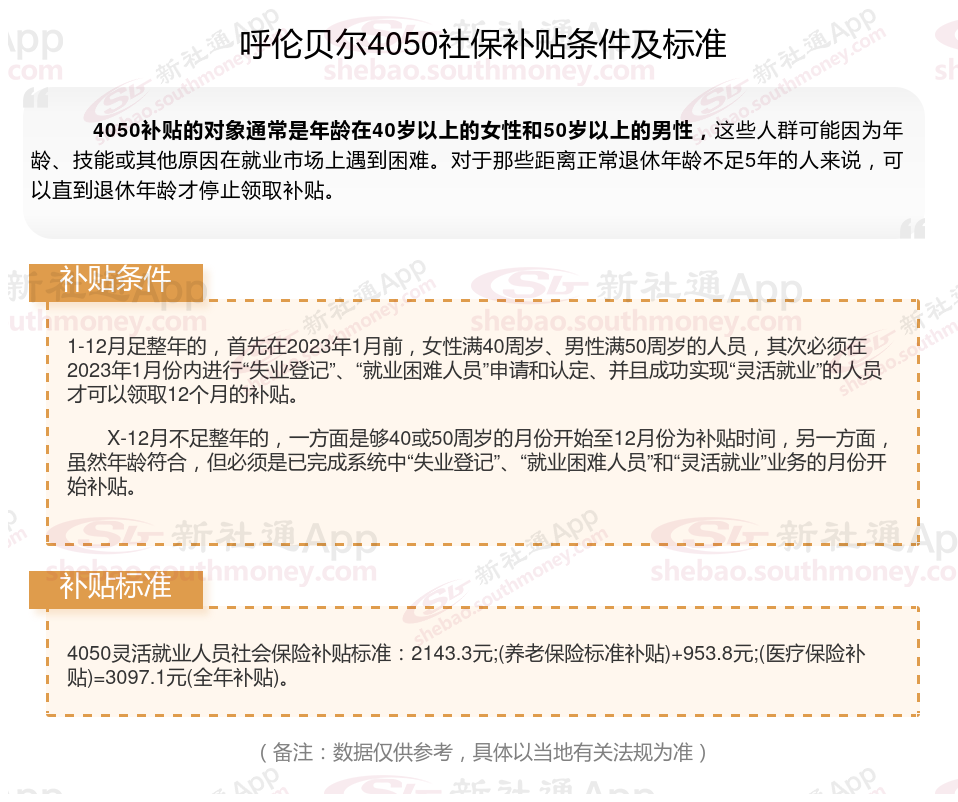 一、2023-2024年呼伦贝尔4050社保补贴标准及条件,最新如下