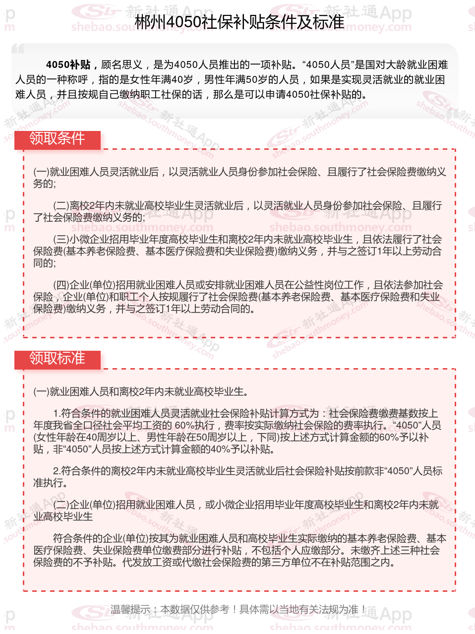 以上就是郴州4050灵活就业社保补贴的相关内容,欢迎关注新社通/下载新社通APP了解更多五险一金专业资讯。