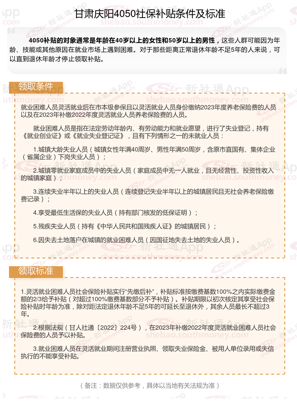 以上就是甘肃庆阳4050灵活就业社保补贴的相关内容,欢迎关注新社通/下载新社通APP了解更多五险一金专业资讯。