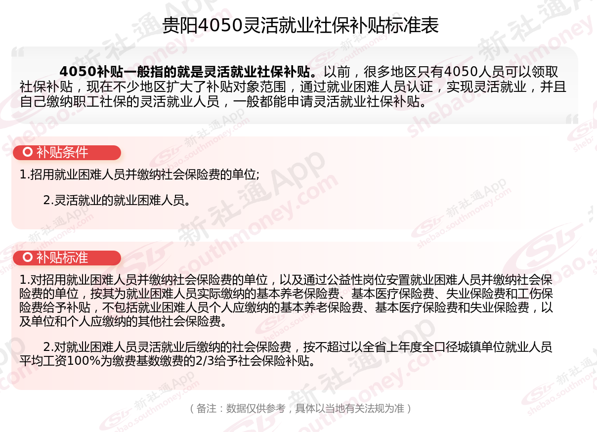 二、贵阳4050社保补贴标准及条件4050社保补贴,最新如下