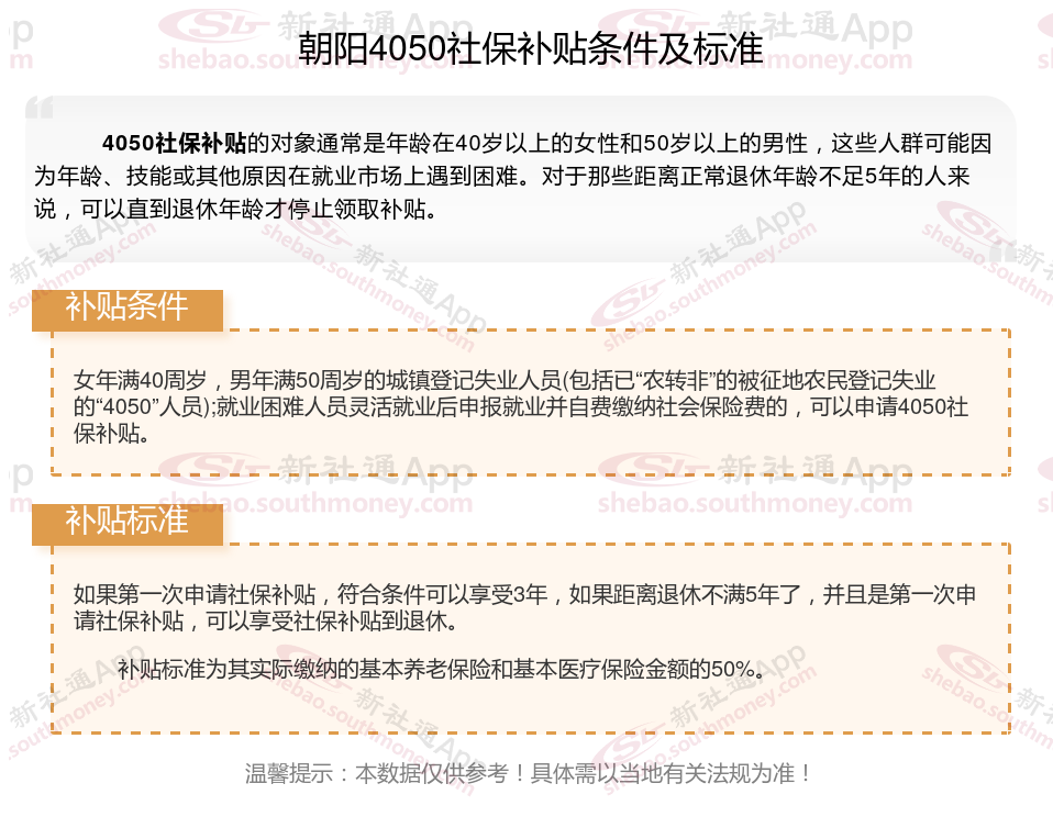 二、2025年朝阳4050社保补贴标准是多少?领取条件是什么?