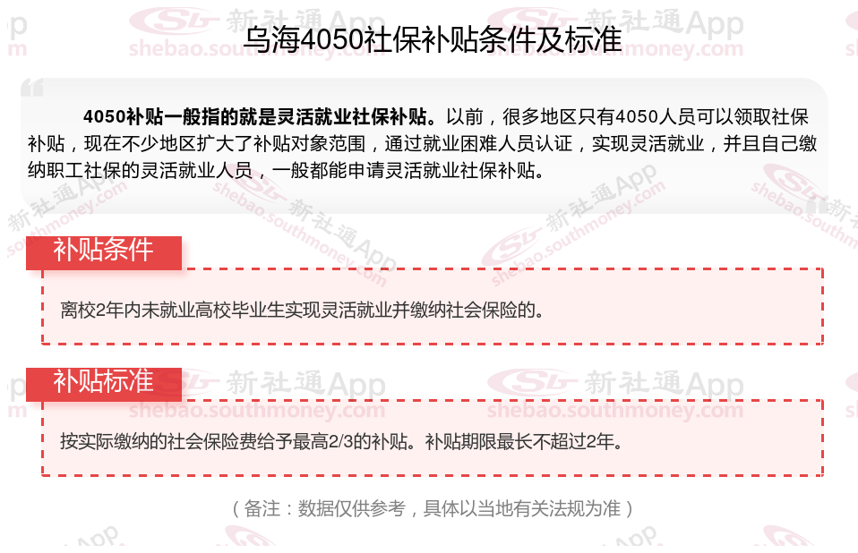 一、乌海4050社保补贴标准及条件2025年最新消息
