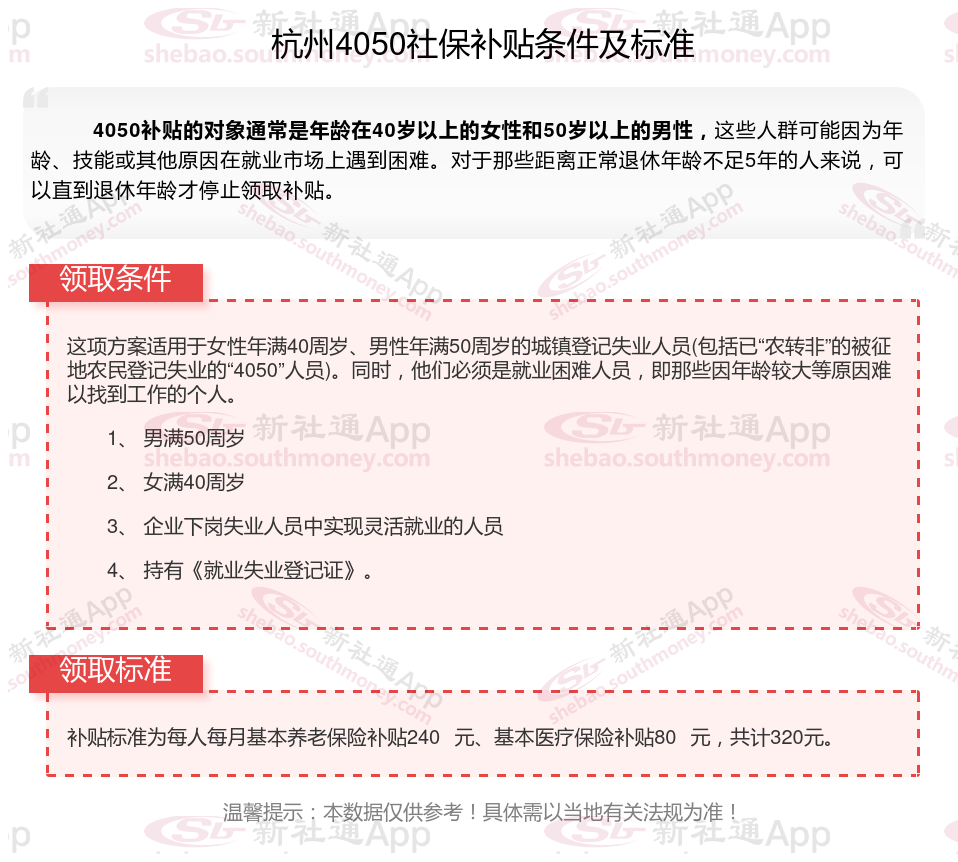 二、2025年杭州4050社保补贴标准及条件是什么?