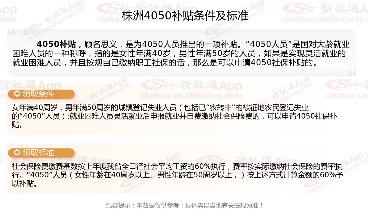 二、2025年株洲4050社保补贴标准及条件,最新如下: