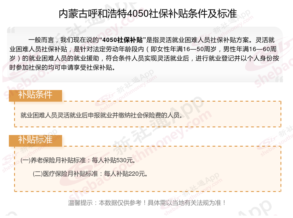 以上就是内蒙古呼和浩特4050灵活就业社保补贴的相关内容,欢迎关注新社通/下载新社通APP了解更多五险一金专业资讯。