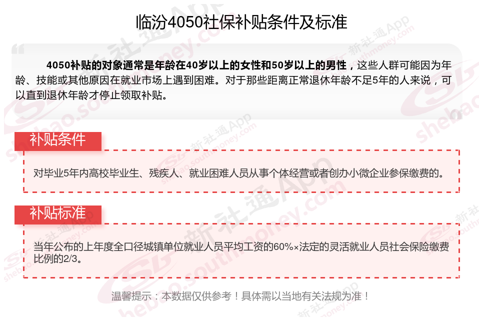 1、临汾4050社保补贴申请条件