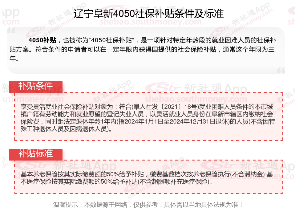 二、辽宁阜新4050社保补贴多少钱一个月,辽宁阜新4050社保补贴新规2025年最新标准