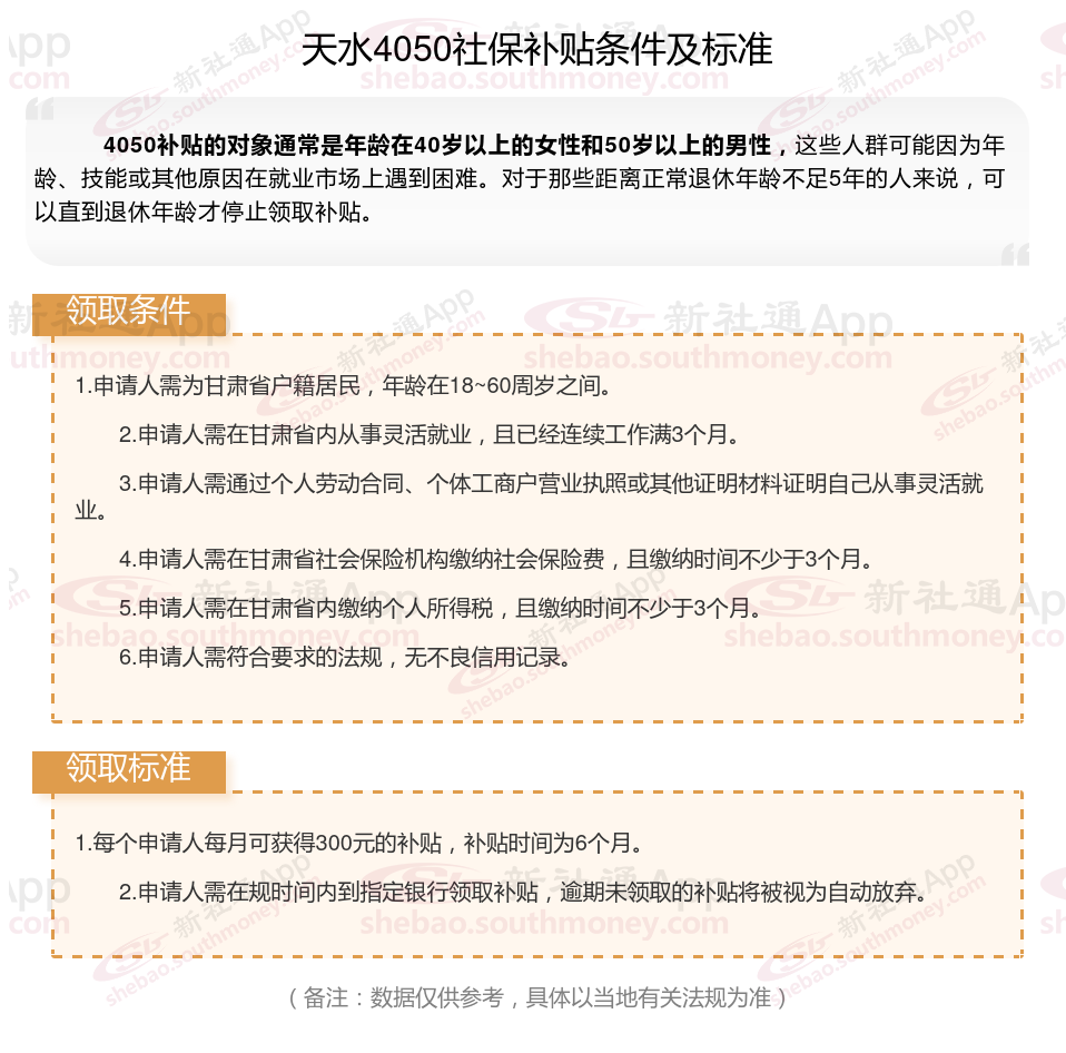 二、2025年天水4050社保补贴标准及条件