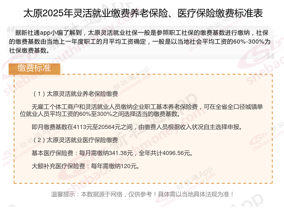 以上就是新社通小编带来太原灵活就业社保缴费知识,内容供参考,希望对你有帮助,欢迎关注/下载新社通APP解锁更多社保专业资讯。