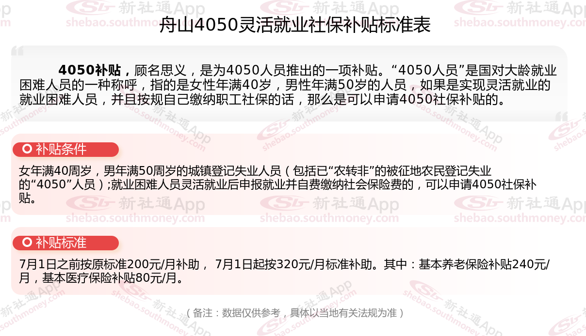 一、2023-2024年舟山4050社保补贴标准及条件,最新如下