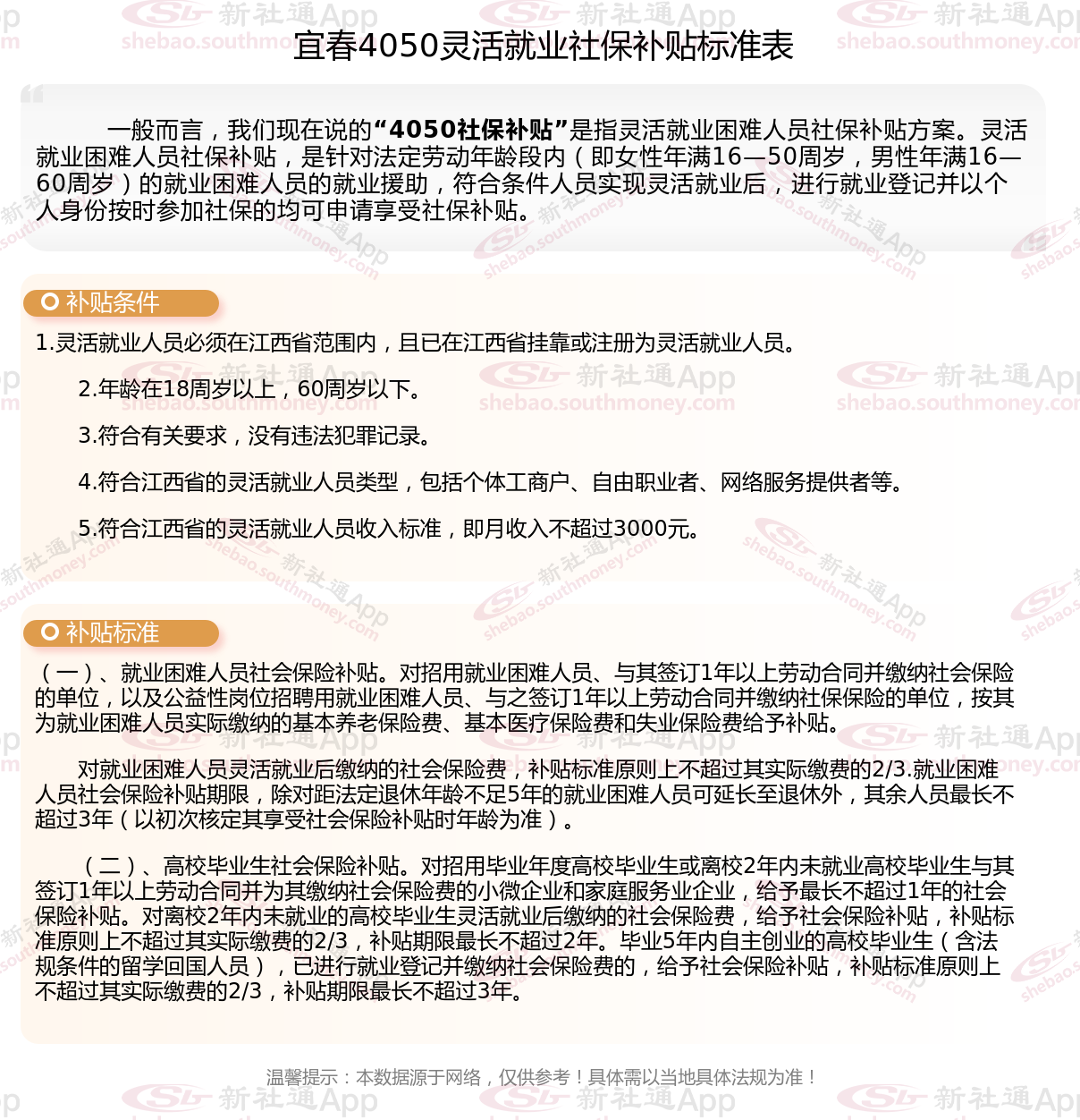 以上就是宜春4050灵活就业困难人员社保补贴的相关内容,欢迎关注新社通/下载新社通APP了解更多五险一金专业资讯。