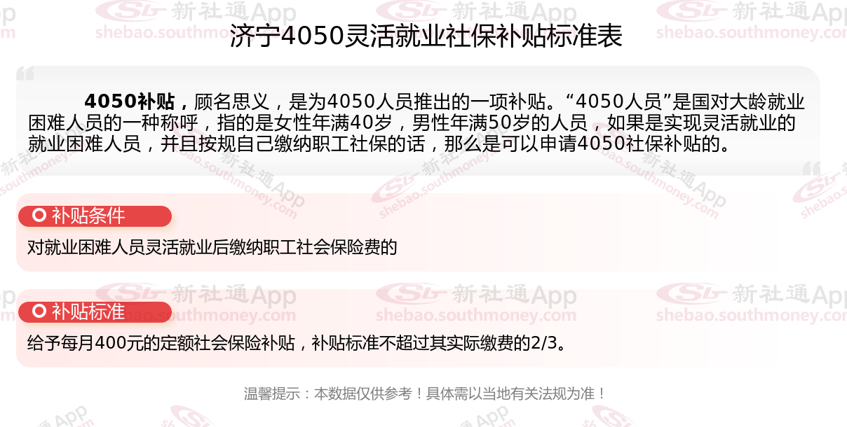 一、济宁4050社保补贴标准及条件2025年最新消息