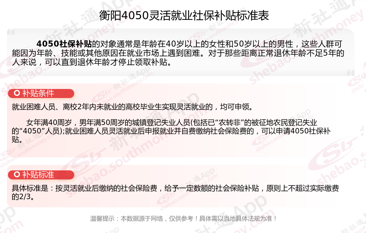 二、衡阳4050社保补贴标准及条件(2025年最新)