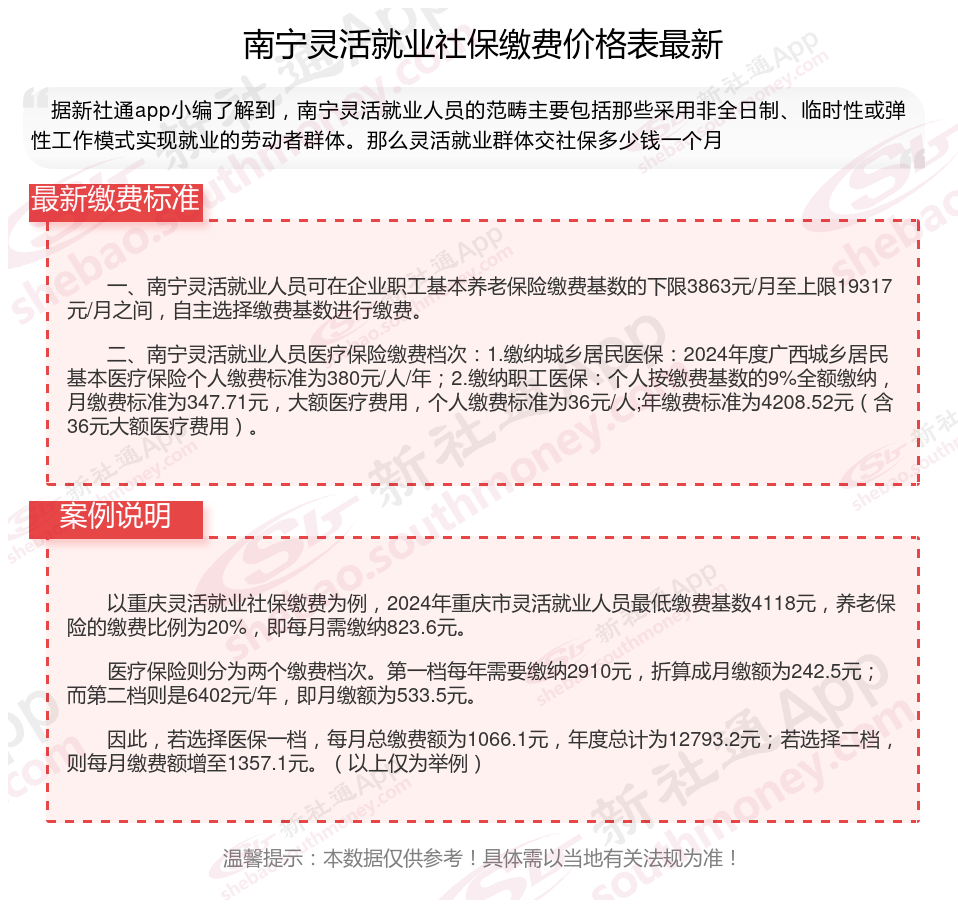 以上就是南宁灵活就业社保缴费的全部内容,数据及内容供参考!希望对你有帮助,欢迎关注新社通解锁更多社保专业资讯。