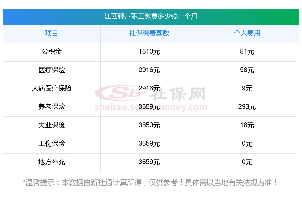 一、江西赣州职工社保缴费基数是多少钱一个月?职工社保缴纳标准