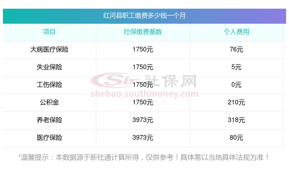 一、红河县职工社保缴费基数是多少钱一个月?职工社保缴纳标准是多少?