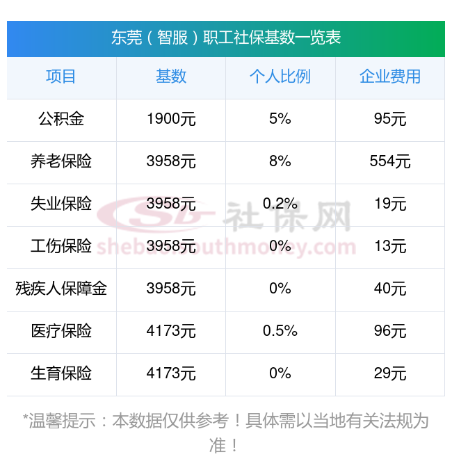 一、东莞(智服)职工社保缴费基数是多少钱一个月?职工社保缴纳标准是多少?
