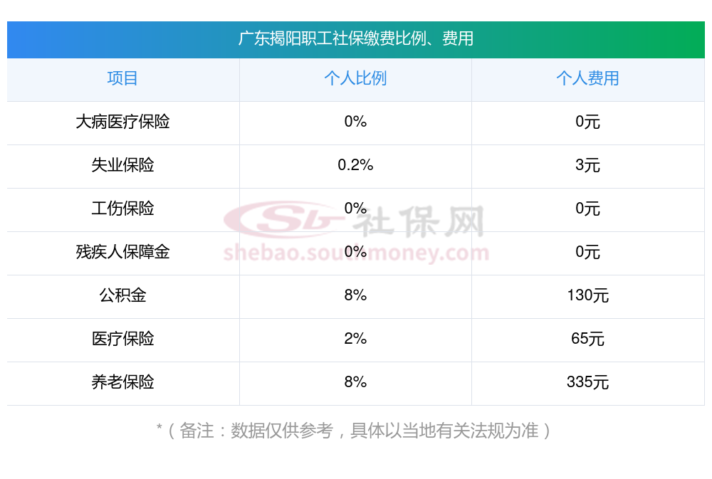 二、广东揭阳职工社保缴费基数是多少钱一个月?职工社保缴纳标准是多少?