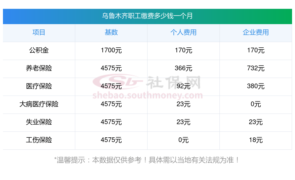 二、乌鲁木齐职工社保缴费多少钱一个月,2023-2024年职工和公司社保各交多少钱?
