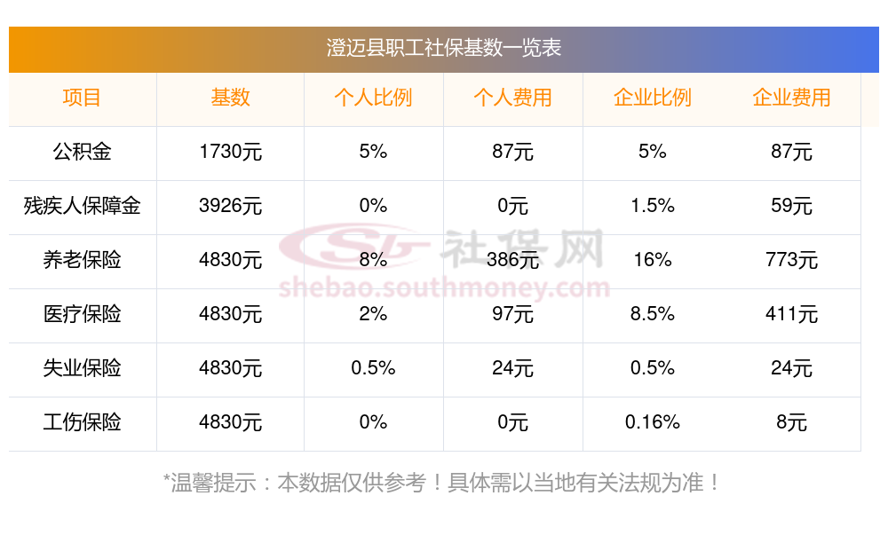 据新社通app显示,澄迈县社保缴费基数2023-2024年最新标准如下:
