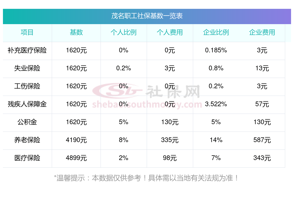 一、茂名2023-2024年职工和公司社保各交多少钱 茂名职工社保缴费多少钱一个月