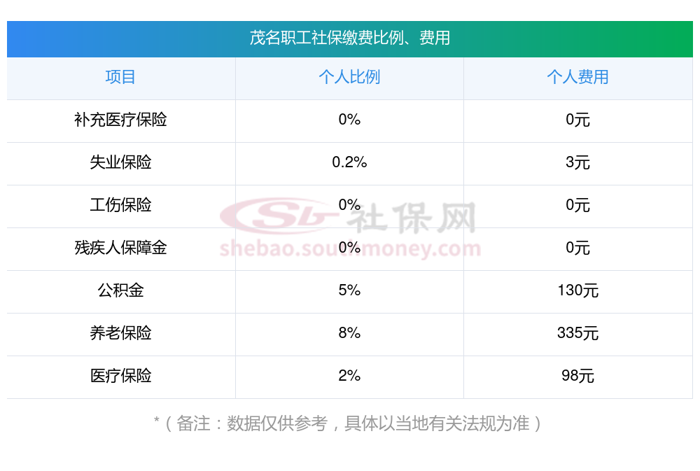 一、茂名职工社保缴费多少钱一个月,2023-2024年职工和公司社保各交多少钱?