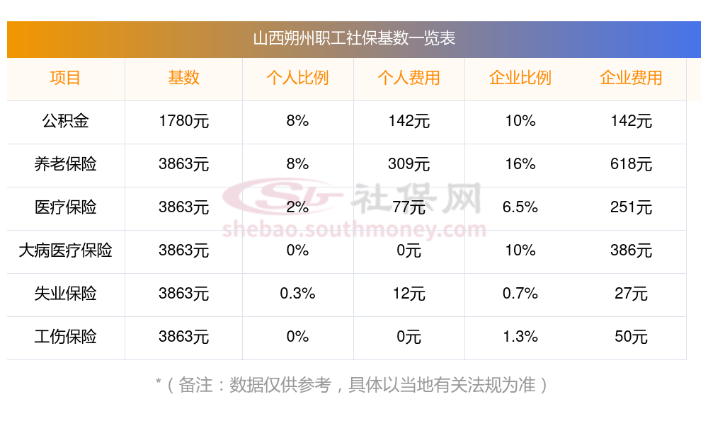 据新社通app显示,山西朔州社保缴费基数2023-2024年标准,(社保最低一个月要交多少钱)山西朔州社保费用如下:
