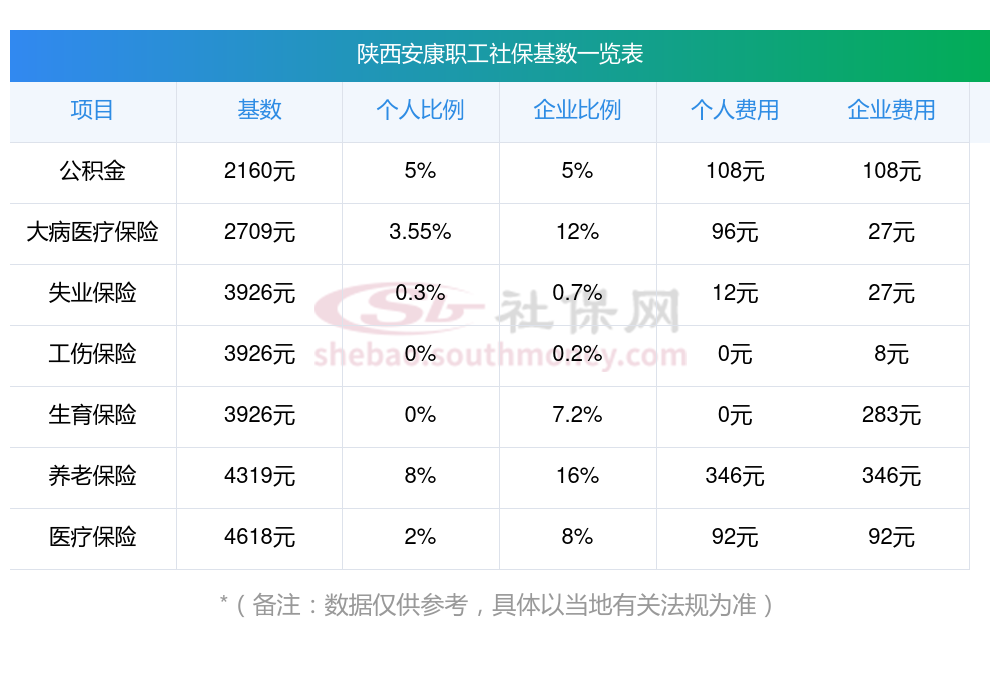 据新社通app显示,陕西安康社保缴费基数2023-2024年标准,(社保最低一个月要交多少钱)陕西安康社保费用如下: