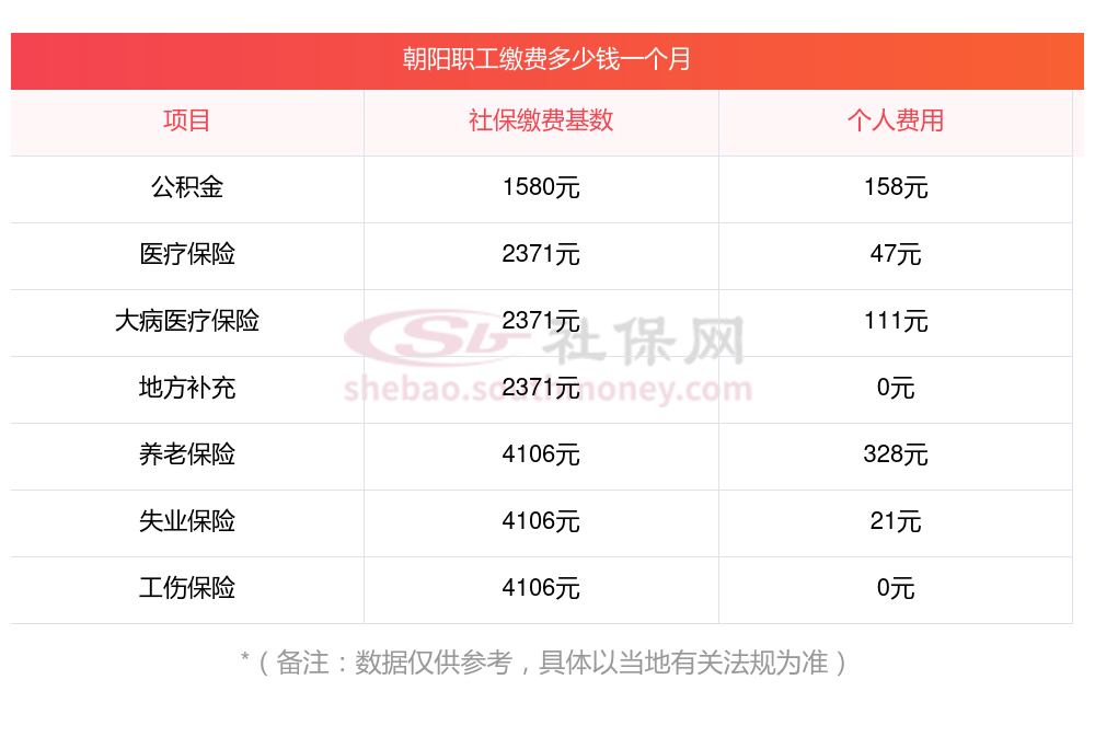 一、朝阳职工社保缴费多少钱一个月,2023-2024年职工和公司社保各交多少钱?