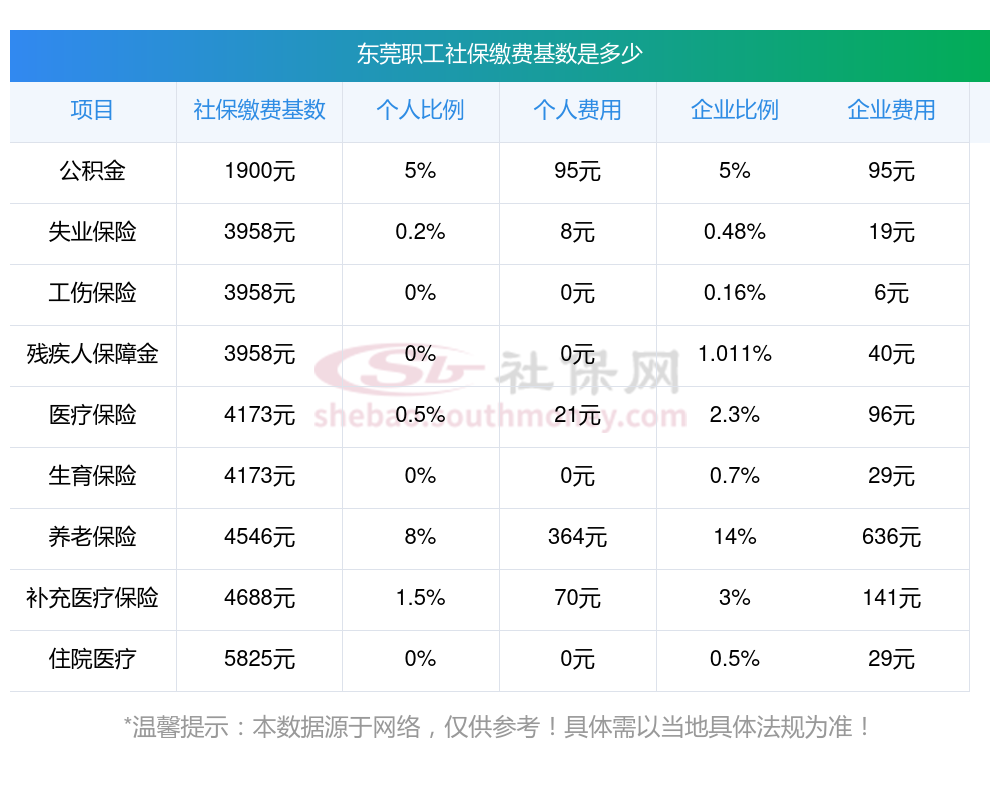 一、东莞职工社保缴费基数是多少钱一个月?职工社保缴纳标准是多少?
