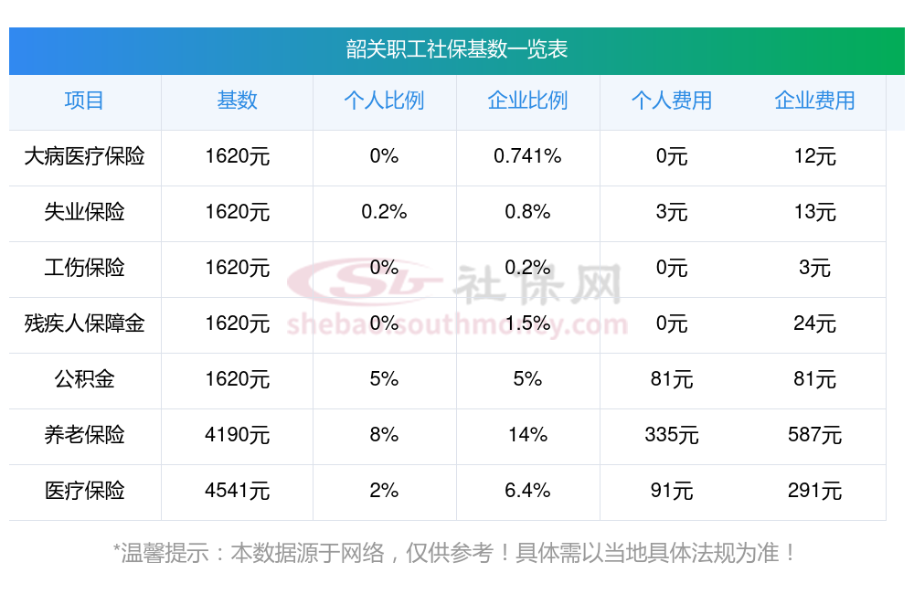据新社通app显示,韶关社保缴费基数2023-2024年最新消息,韶关职工社保缴费详情如下: