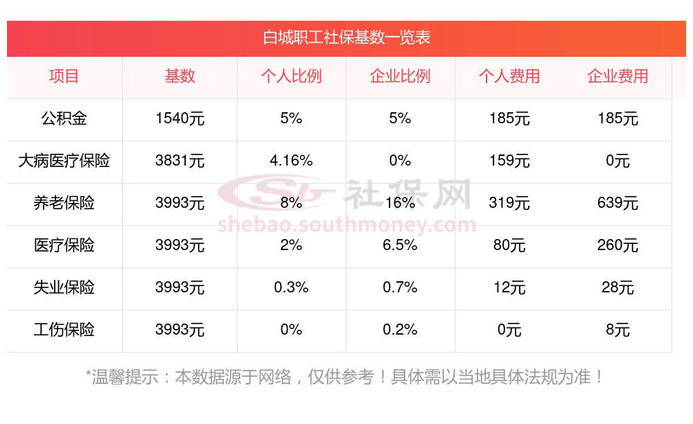二、白城职工社保缴费基数是多少钱一个月?职工社保缴纳标准是多少?